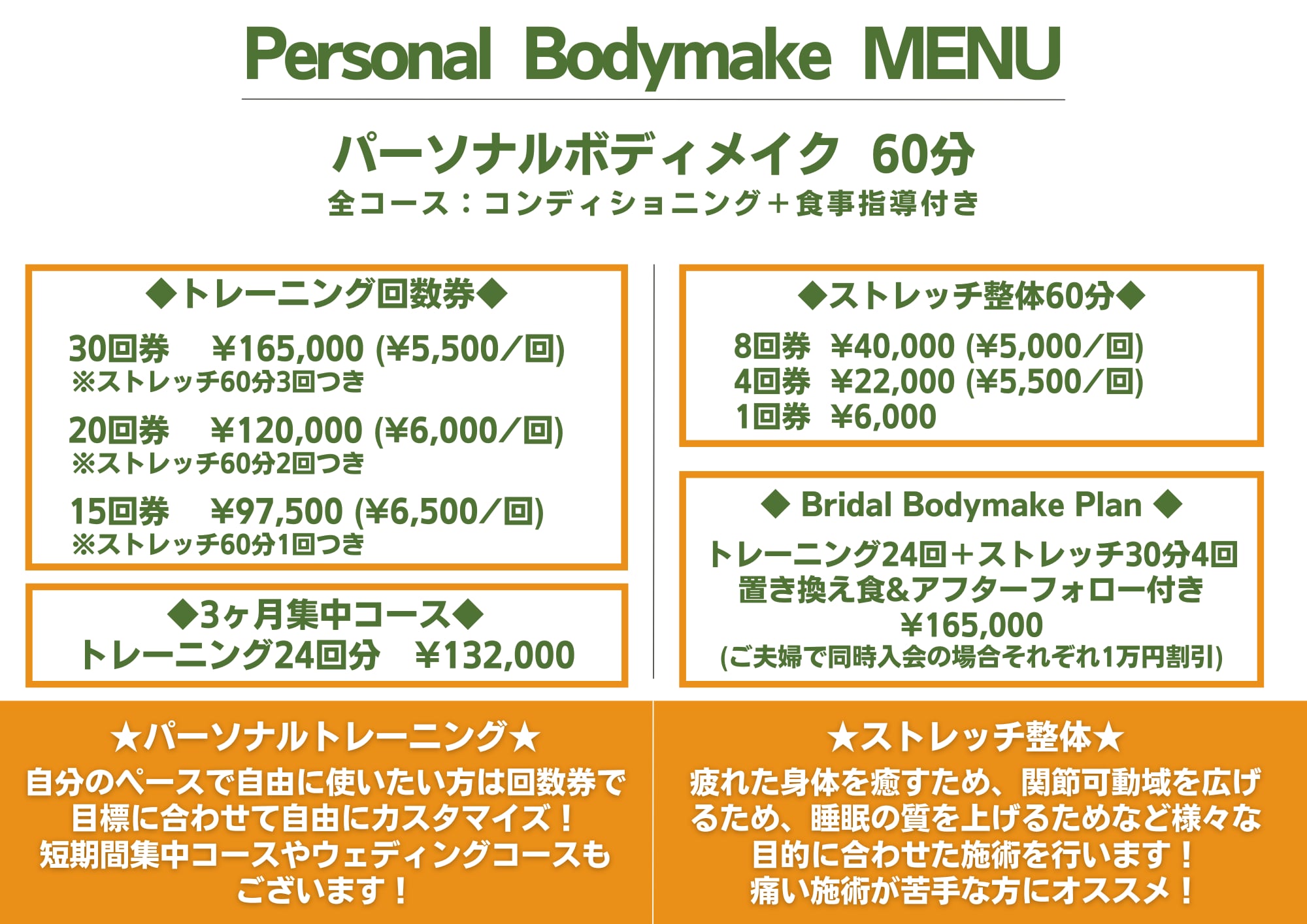 回数券の他にも3ヶ月集中コースやブライダルコース、月額固定プランもご用意しております。